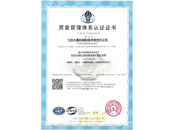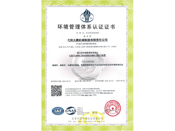 • 09-28弋陽大鵬機械制造有限責(zé)任公司成功取得規(guī)范